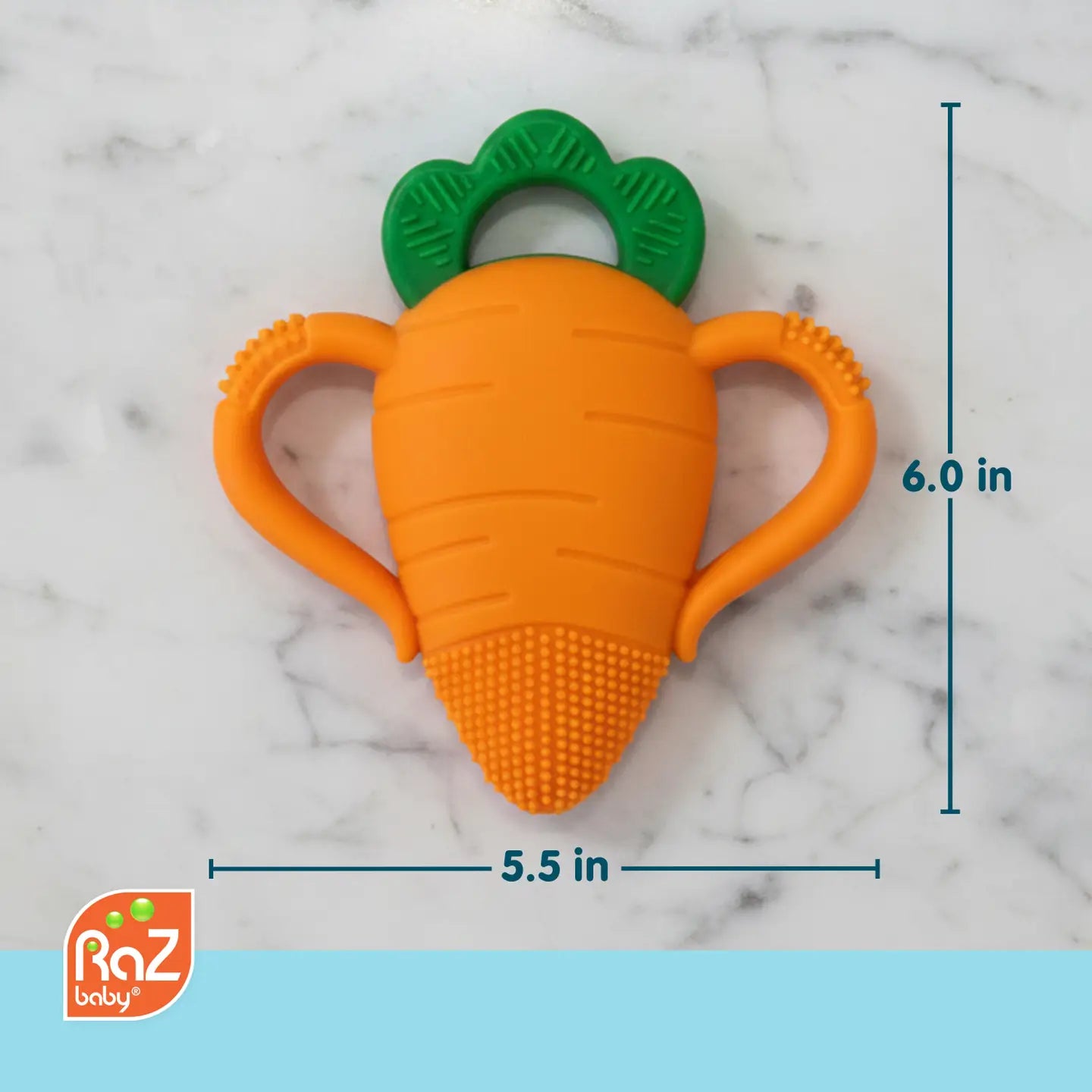 Nature-Inspired Carrot Comfort for Teething Babies – Soothe sore, swollen gums with this soft, 100% silicone teether. Its gentle, multi-texture surface comforts baby’s tender gums while encouraging natural chewing.