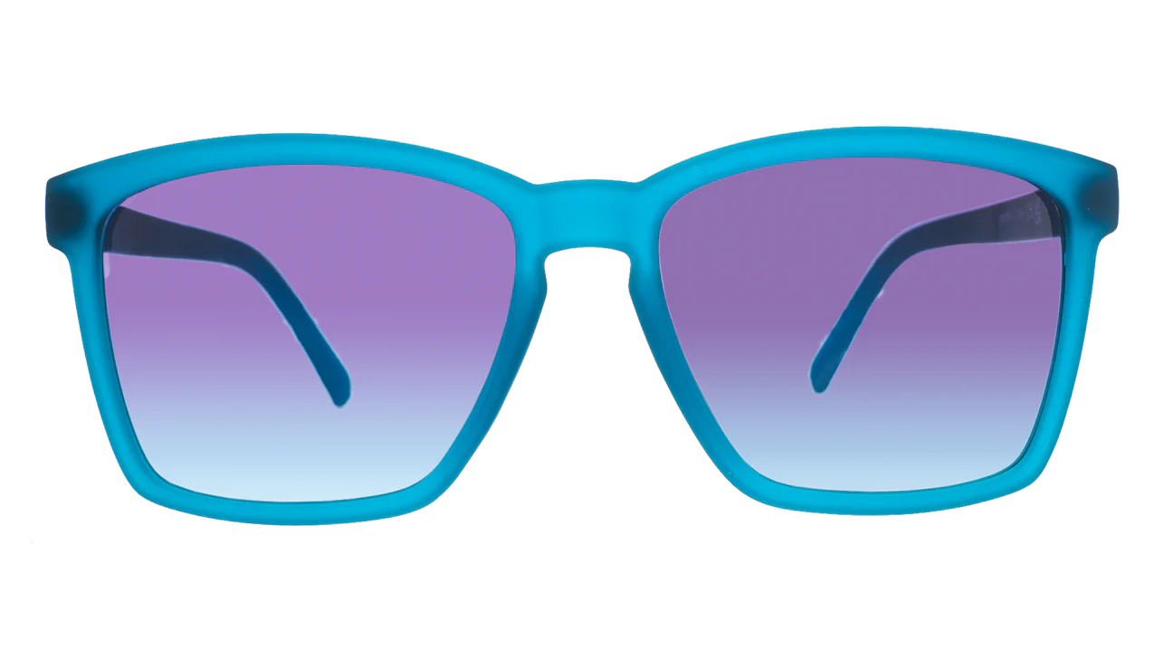 Down for Dungaree Debauchery? Small dark blue fashion-forward gradient sunglasses make the perfect accessory to your Canadian tuxedo. No, these LFG shades aren't made out of denim. But it's the next best thing. Look like the stylish jean-ius you are.