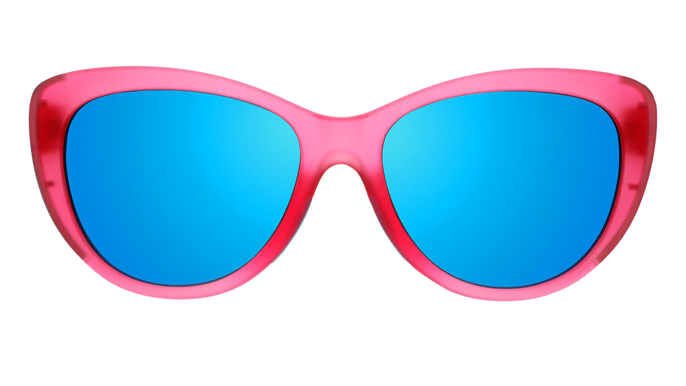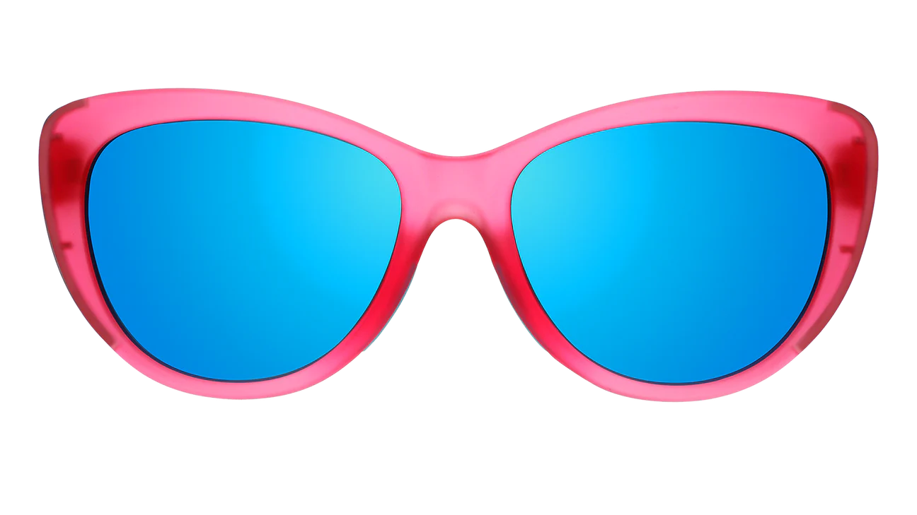 Every day should feel like you're part of Flamingo Fashion Week! Flaunt your flamboyant style in these juicy, translucent pink cat-eye sunglasses with teal reflective lenses and chrome accents. You'll be declared a fashion icon before you know it.