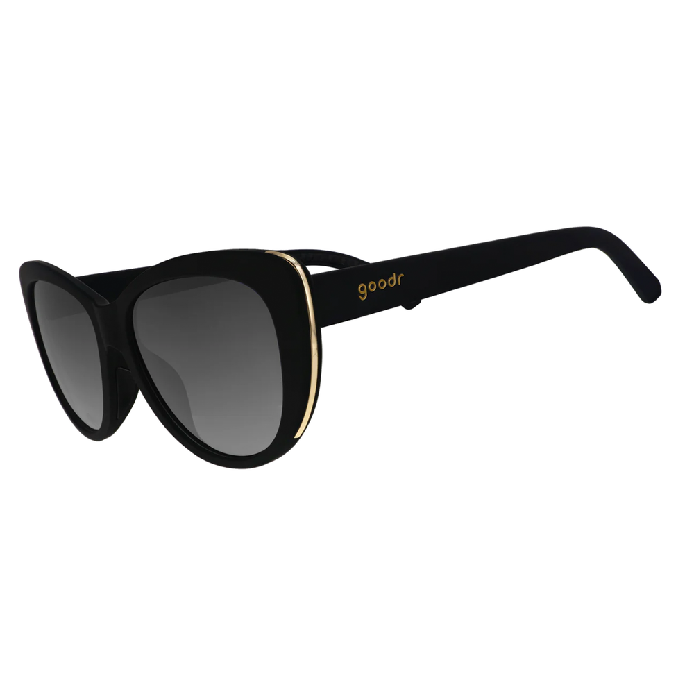 These black cat-eye sunglasses with black non-reflective lenses & light gold accents are giving fashion icon. Won't slip or bounce when vogueing down the catwalk or the sidewalk.