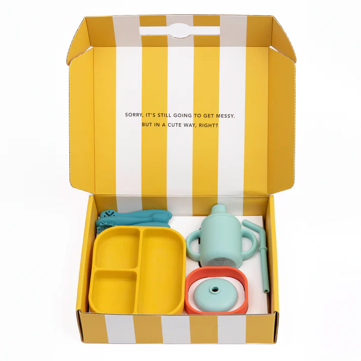 Ready, set, eat! Introducing our expert-approved toolkit of mealtime essentials for baby’s first food and drink! This set is the perfect new baby gift and a parent must-have. Each set includes all of the products needed for the first moment of introducing solids to little ones. Each product is designed to be used from parent led weaning or baby led weaning to independent eating.