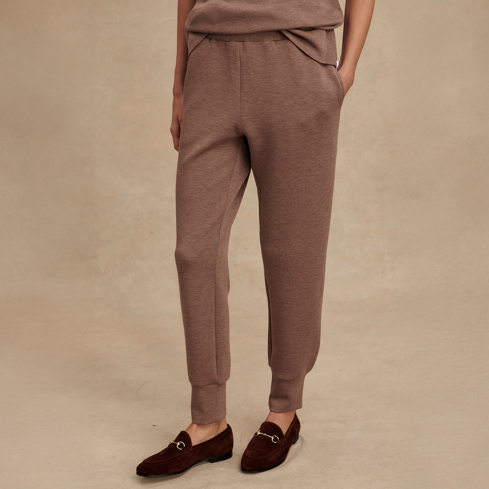 These pants boast a slim, tailored fit that flatters your figure and a cuffed hem that adds a touch of sophistication. The elasticated waistband and internal drawcord provide a personalized fit, while the side and back pockets offer practicality. Perfect for pairing with our DoubleSoft® sweaters, they are the ultimate combination of comfort and elegance.